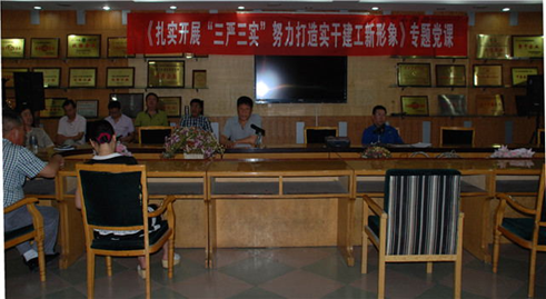 5月24日下午,公司三樓會議室,來自公司機(jī)關(guān)、項(xiàng)目部、分(子)公司中層以上領(lǐng)導(dǎo)干部、基層黨員代表認(rèn)真聆聽了公司黨委書記謝海如同志以《扎實(shí)開展“三嚴(yán)三實(shí)”,努力打造實(shí)干建工新形象》為題的專題黨課。這也是公司今年開展“三嚴(yán)三實(shí)”專題教育實(shí)施方案的要求。黨課由公司黨委副書記馬松林同志主持。