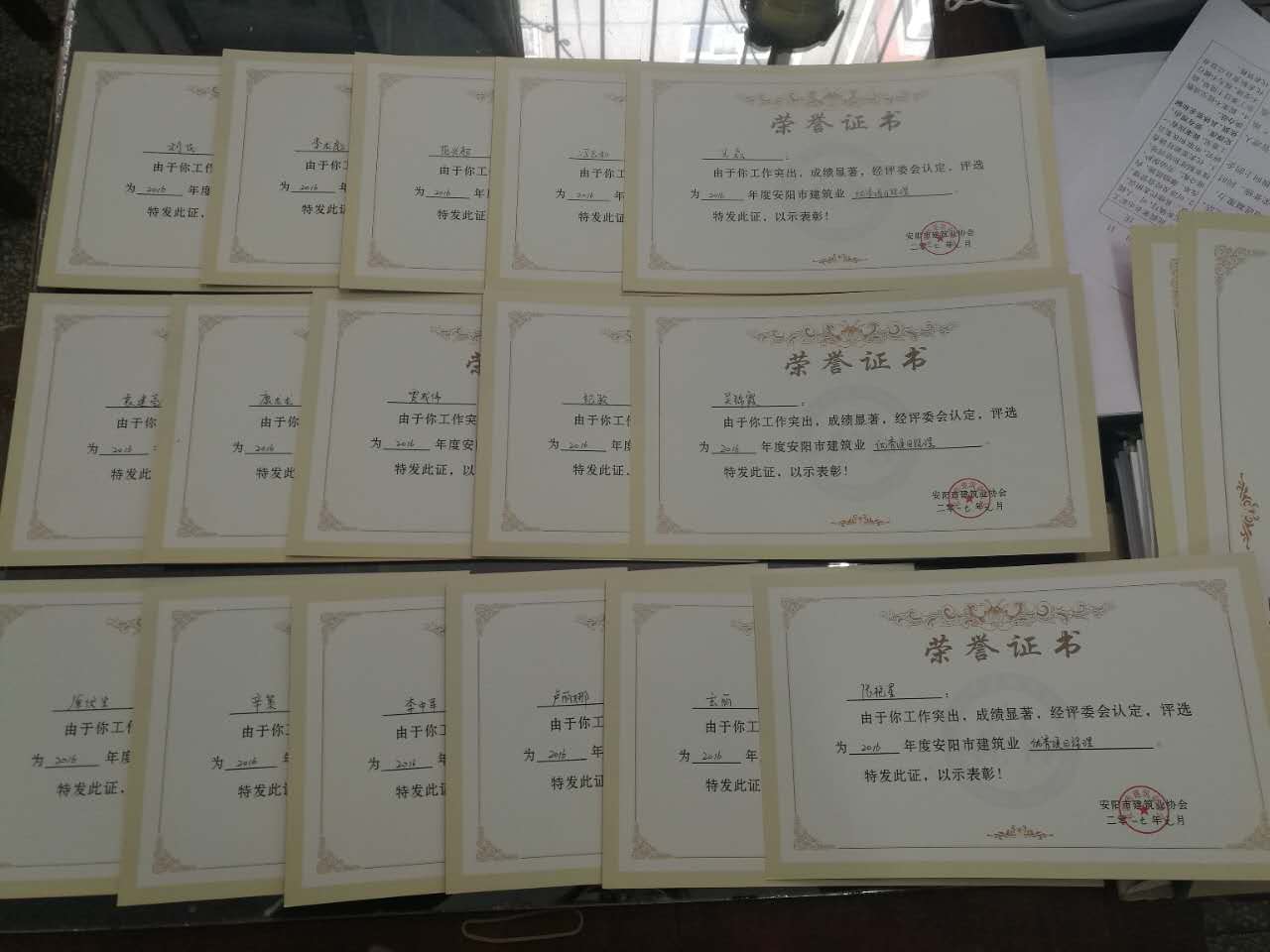 3月3日上午“安陽市建筑業(yè)協(xié)會二零一七年年會暨表彰大會”在市委黨校圖書樓三樓會議室盛大召開,2016年,在公司領(lǐng)導(dǎo)正確指導(dǎo)下,大家銳意進(jìn)取,真抓實干,不斷提高管理和業(yè)務(wù)水平。我公司被評為 “安陽市建筑安全先進(jìn)企業(yè)”、“安陽市建設(shè)工程質(zhì)量管理先進(jìn)企業(yè)”。劉民、原伏生等16名同志獲得“安陽市建筑業(yè)企業(yè)優(yōu)秀項目經(jīng)理”稱號。
