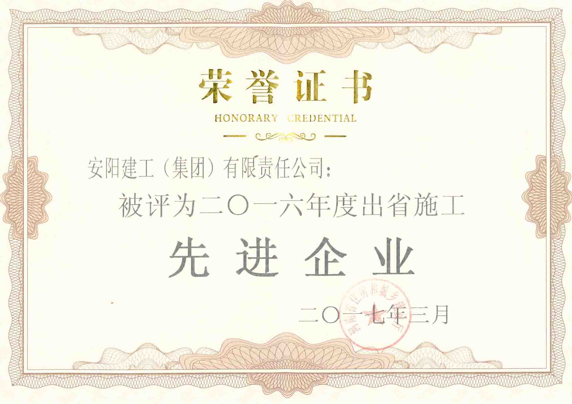 喜 報—我公司被評為“河南省外出施工先進(jìn)單位”