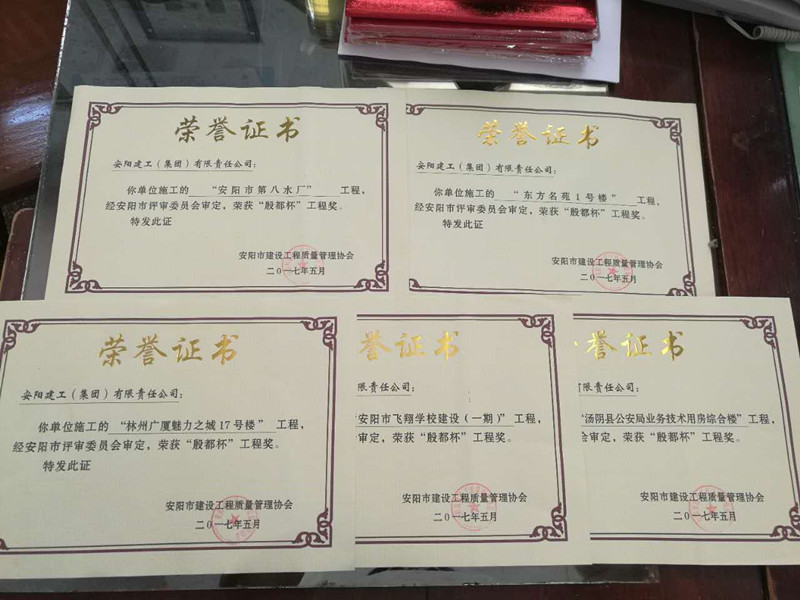 按照公司制定了三年質(zhì)量創(chuàng)優(yōu)滾動(dòng)計(jì)劃,由我公司承建的“安陽(yáng)市第八水廠”、“安陽(yáng)市飛翔學(xué)校建設(shè)(一期)工程” “湯陰縣公安局業(yè)務(wù)技術(shù)用房綜合樓”、“安陽(yáng)市東方名苑1號(hào)樓”、“林州廣廈魅力之城17號(hào)樓”五項(xiàng)工程榮獲2017年度安陽(yáng)市“殷都杯”獎(jiǎng)工程(市優(yōu)質(zhì)工程)。工程獲獎(jiǎng)不僅鍛煉了項(xiàng)目部團(tuán)隊(duì)的合作意識(shí),提高了項(xiàng)目管理水平與項(xiàng)目成員個(gè)人技術(shù)水平,也帶動(dòng)了其他項(xiàng)目比、學(xué)、趕、幫、超的積極工作氛圍,同時(shí)為項(xiàng)目技術(shù)人員職稱評(píng)審創(chuàng)造了有利條件,為公司的投標(biāo)經(jīng)營(yíng)工作奠定了有利的基礎(chǔ)。