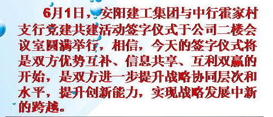 安陽建工與中行霍家村支行舉行黨建共建簽字儀式