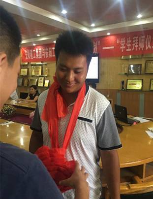 拜師儀式上,學(xué)生向自己的師傅鞠躬、敬茶,獻(xiàn)花,行拜師禮。指導(dǎo)老師代表原國(guó)瑞發(fā)言表態(tài),“一定恪盡職守,全力教導(dǎo),起到帶頭示范作用”,學(xué)生代表在隨后的發(fā)言中表示,“一定虛心請(qǐng)教,把師傅作為學(xué)習(xí)的楷?!薄?/span>