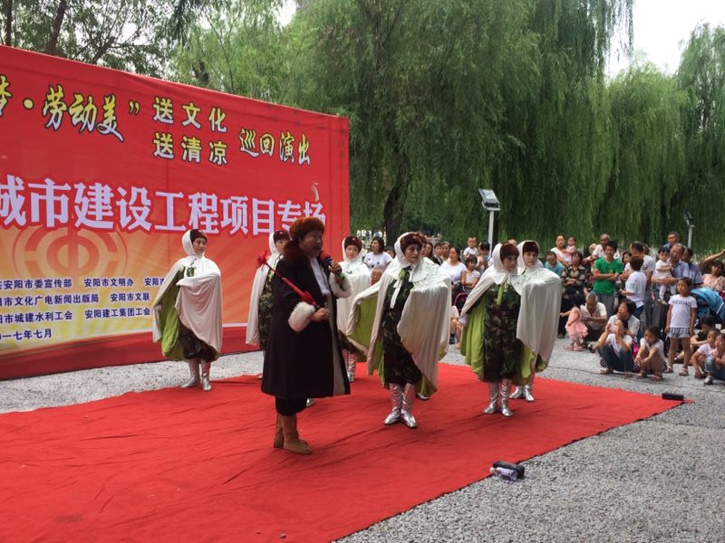 今天的送清涼,送文化活動在人民公園海綿城市建設項目部舉行,不僅有我們的工人觀看文藝演出,也吸引了廣大的游客朋友們,為公司帶來了無形的宣傳,她們不僅知道了公園的海綿城市建設是由我們安陽建工承建,也對我們公司贊不絕口,夸公司領導關心一線工人,夸舉辦活動形式好,夸建工集團是個好企業(yè),夸咱們施工值得信任!活動期間工會主席馬主席,安全部長方部長,工程部副部長常青,安全部副部長馮亮,為項目兄弟們發(fā)放慰問品。 集團工會。
