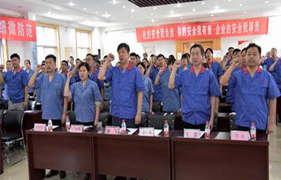 隨后,全體人員起立,舉起右拳,在安全部副部長魏鵬帶領(lǐng)下宣誓,莊嚴(yán)的誓詞,洪亮的聲音,表達(dá)了建工人對(duì)安全發(fā)展的決心。警示大家要以高度的責(zé)任感和使命感來重視安全生產(chǎn)工作,時(shí)刻緊繃安全生產(chǎn)這根弦,營造人人銘記安全、人人關(guān)注安全的濃厚氛圍。
