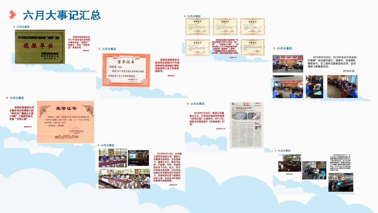 入夏以來(lái),集團(tuán)公司各方面工作扎實(shí)推進(jìn)。夏初,我公司榮登2018年全市納稅前100名光榮榜及各縣(市)區(qū)納稅前10名企業(yè)榜;5月28日,集團(tuán)公司董事王蘭蘭、中易恒經(jīng)理李相平就裝配式技術(shù)推進(jìn)接受安陽(yáng)日?qǐng)?bào)記者采訪(fǎng),該專(zhuān)題報(bào)道于6月13日刊登于《安陽(yáng)晚報(bào)》。5月31日,每年一度的法人講安全如期舉行;6月13日,北京建工集團(tuán)蒞臨我公司參觀(guān)交流;6月22日非公企業(yè)民主管理集體協(xié)商工作觀(guān)摩調(diào)研培訓(xùn)座談會(huì)在我公司圓滿(mǎn)舉行,市總工會(huì)法律部李海燕部長(zhǎng)、城建交通水利工會(huì)梁曦主席和其他單位領(lǐng)導(dǎo)參會(huì)。