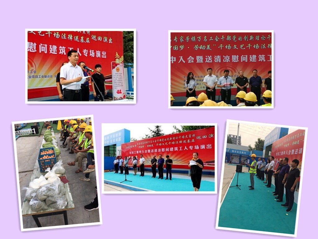 活動(dòng)伊始,安陽(yáng)建工集團(tuán)副總經(jīng)理劉民致了歡迎詞,并介紹了建工集團(tuán)發(fā)展?fàn)顩r;隨后舉行了建筑行業(yè)農(nóng)民工集中入會(huì)儀式,活動(dòng)現(xiàn)場(chǎng)農(nóng)民工代表進(jìn)行了發(fā)自肺腑的發(fā)言.并進(jìn)行了集體入會(huì)宣誓。安陽(yáng)市總工會(huì)黨組成員、副主席朱繼衡在儀式上做了講話,并為農(nóng)民工發(fā)放了工會(huì)會(huì)員證和夏季降溫慰問(wèn)品,和一線的建筑工人聆聽了法律宣講、觀看了職工藝術(shù)團(tuán)精彩的文藝演出。