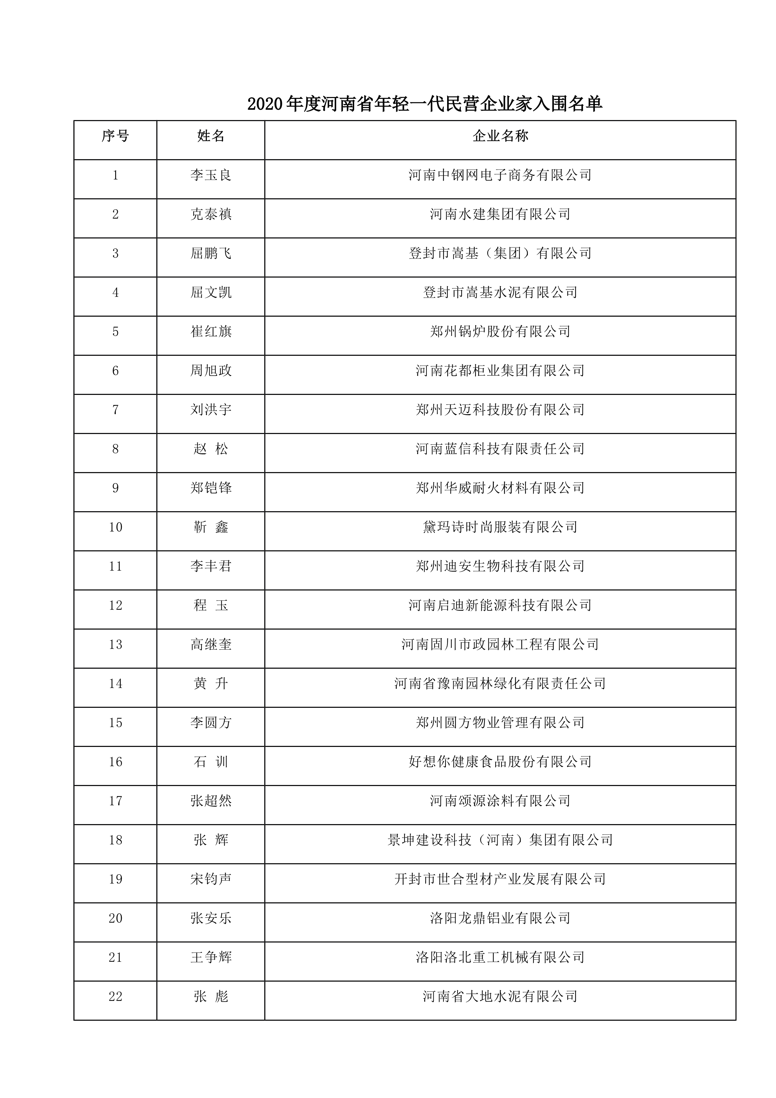 附件:2020年度河南省年輕一代民營企業(yè)家入圍名單