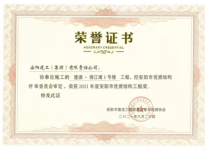 建源·繡江南項(xiàng)目喜獲安陽市優(yōu)質(zhì)結(jié)構(gòu)工程獎