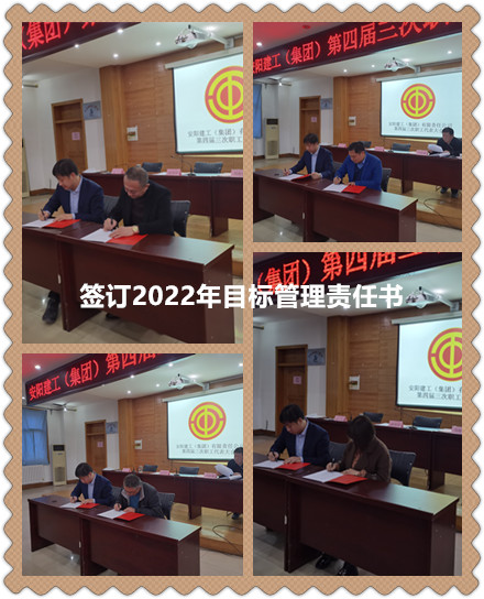 工會主席馬松林同志宣布了2021年度責任目標考核結果。總經理謝飛同志分別與市場營銷中心、工程部等十家單位和部門簽訂了2022年目標責任書。