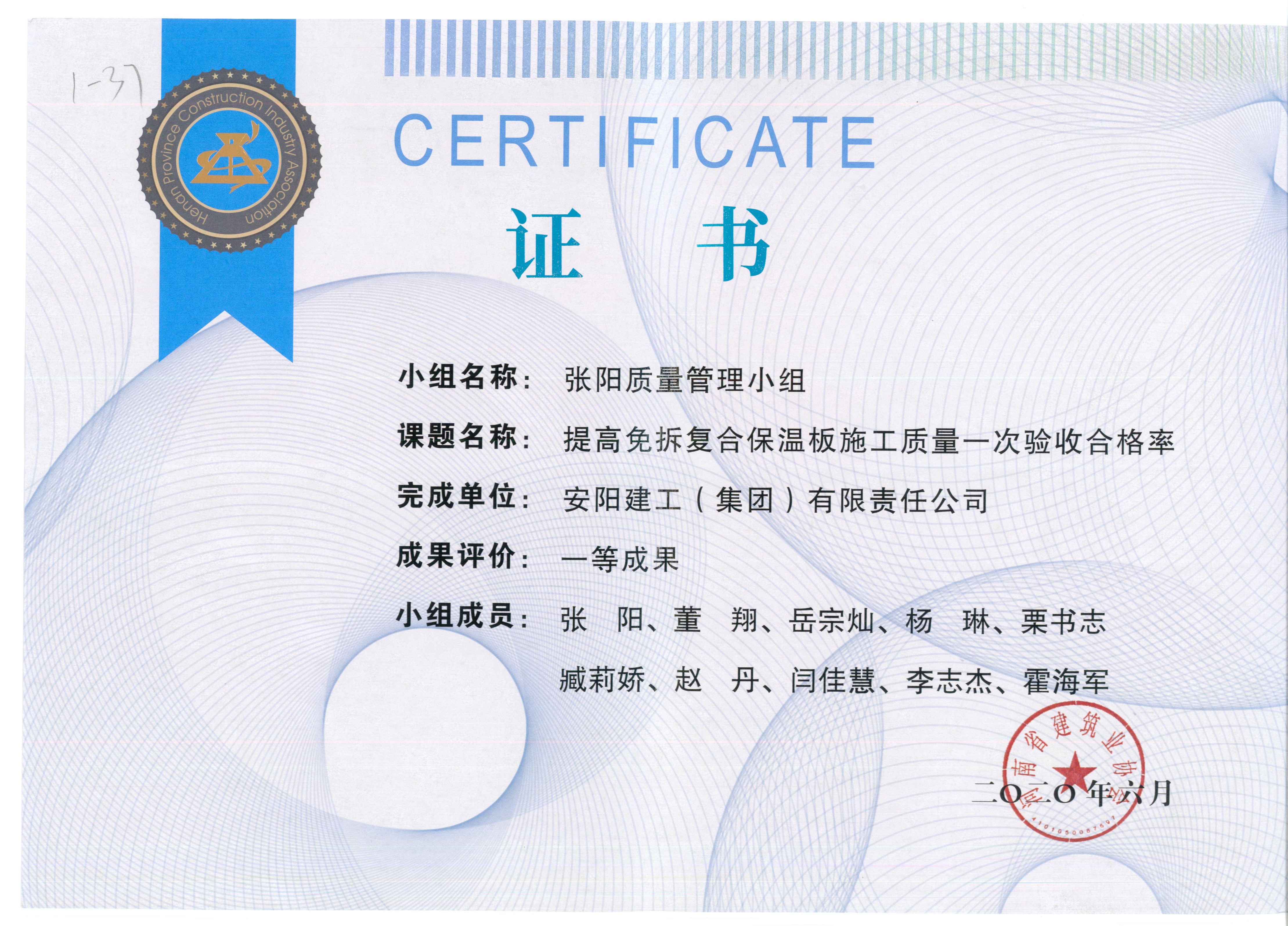 2020年集團公司榮獲河南省建筑業(yè)質量管理小組大賽一等獎