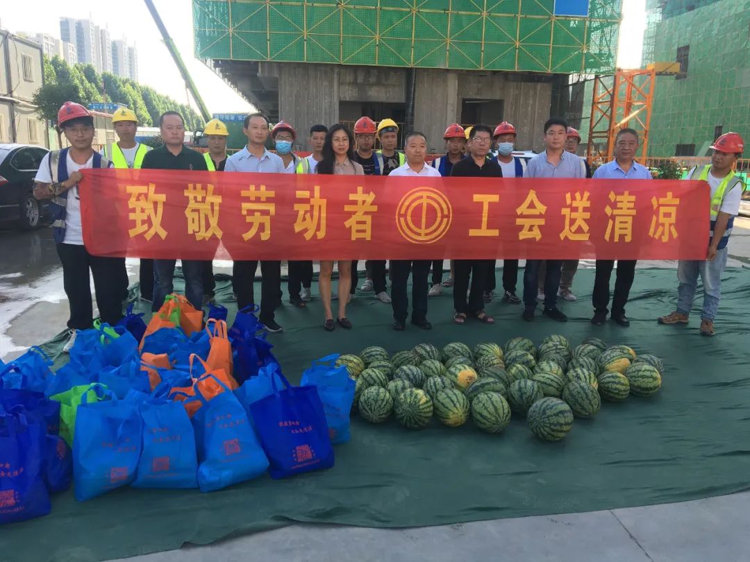 炎炎夏日送清涼,濃濃關(guān)愛入心間。7月6日下午,致敬勞動者—工會送清涼暨送安全、送法律下基層活動啟動儀式在安陽建工集團(tuán)師范學(xué)院南校區(qū)工程項目施工現(xiàn)場舉行,安陽市總工會副主席苗廣軍、安陽市城建交通水利工會主席梁曦、副主席靳遠(yuǎn)、安陽建工集團(tuán)工會主席馬松林參加了活動,啟動儀式由公司工會副主席聶磊主持。