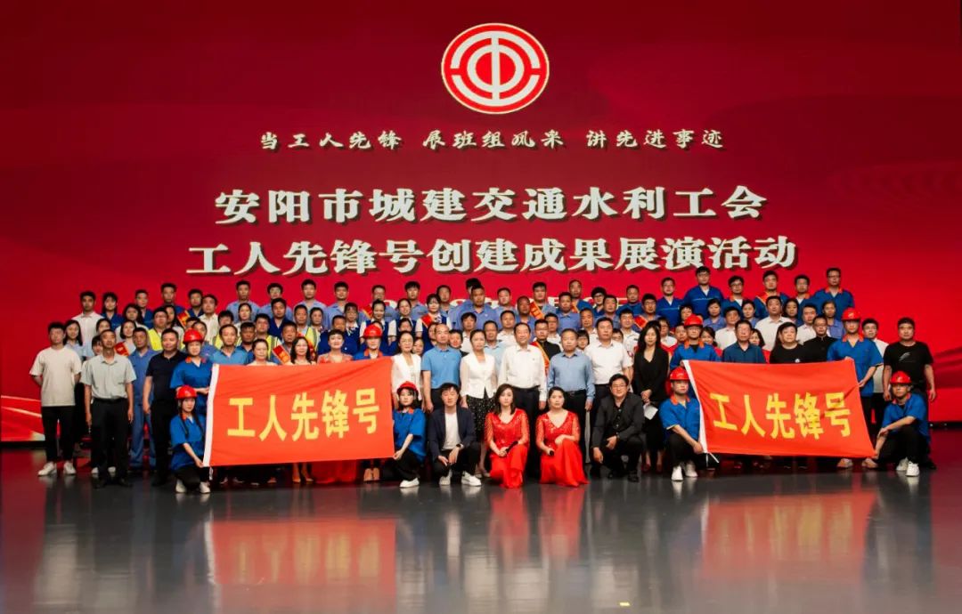 2022年6月9日下午,安陽(yáng)市城建交通水利系統(tǒng)“喜迎二十大 建功新時(shí)代”工人先鋒號(hào)創(chuàng)建成果展演活動(dòng),在安陽(yáng)市職工文體中心舉行,海悅國(guó)際大廈項(xiàng)目部被授予2022年安陽(yáng)市工人先鋒號(hào),項(xiàng)目經(jīng)理馮亮現(xiàn)場(chǎng)接受“工人先鋒號(hào)”旗幟。