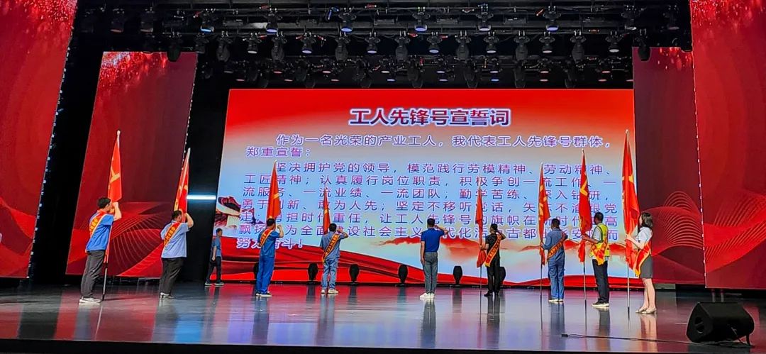 接過先鋒號(hào)旗幟,項(xiàng)目經(jīng)理馮亮代表工人先鋒號(hào)群體鄭重宣誓:堅(jiān)決擁護(hù)黨的領(lǐng)導(dǎo),模范踐行勞模精神、勞動(dòng)精神、工匠精神;認(rèn)真履行崗位職責(zé),積極爭(zhēng)創(chuàng)一流工作、一流服務(wù)、一流業(yè)績(jī)、一流團(tuán)隊(duì);勤學(xué)苦練、深入鉆研,勇于創(chuàng)新、敢為人先;堅(jiān)定不移聽黨話,矢志不移跟黨走;勇?lián)鷷r(shí)代責(zé)任,讓工人先鋒號(hào)的旗幟在新時(shí)代高高飄揚(yáng),為全面建設(shè)社會(huì)主義現(xiàn)代化活力古都出彩安陽(yáng)而努力奮斗!