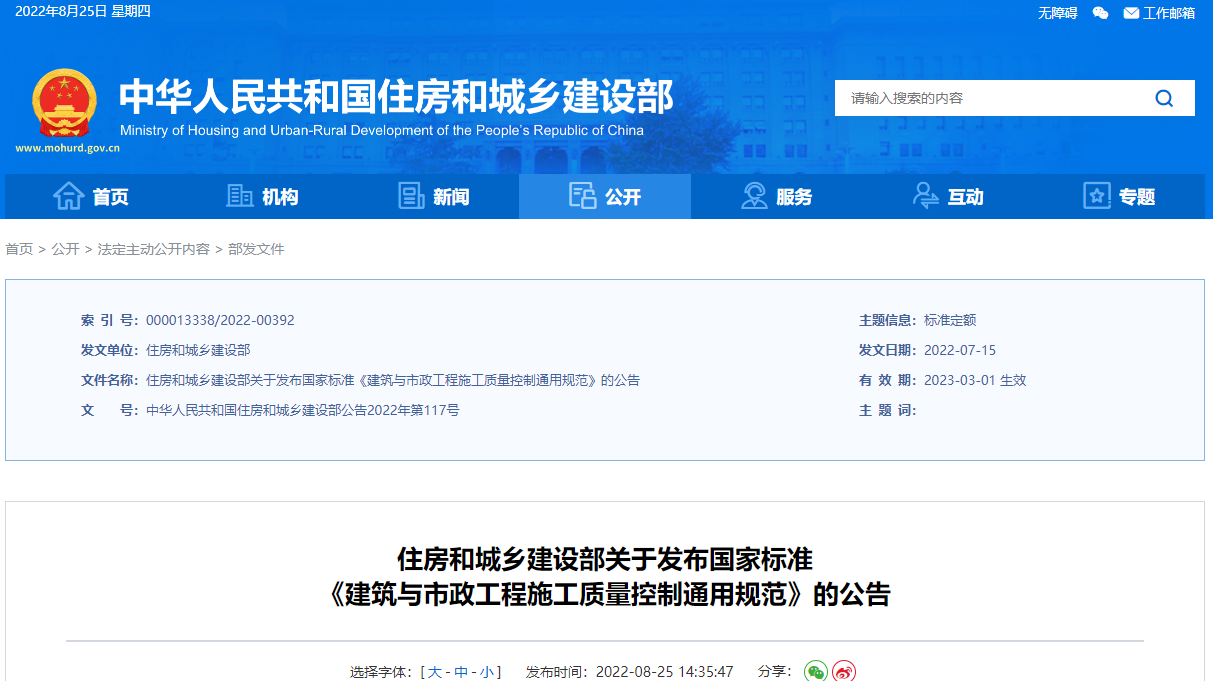 原文鏈接及附件下載:住房和城鄉(xiāng)建設(shè)部關(guān)于發(fā)布國家標(biāo)準(zhǔn) 《建筑與市政工程施工質(zhì)量控制通用規(guī)范》的公告 https://www.mohurd.gov.cn/gongkai/fdzdgknr/zfhcxjsbwj/202208/20220825_767714.html