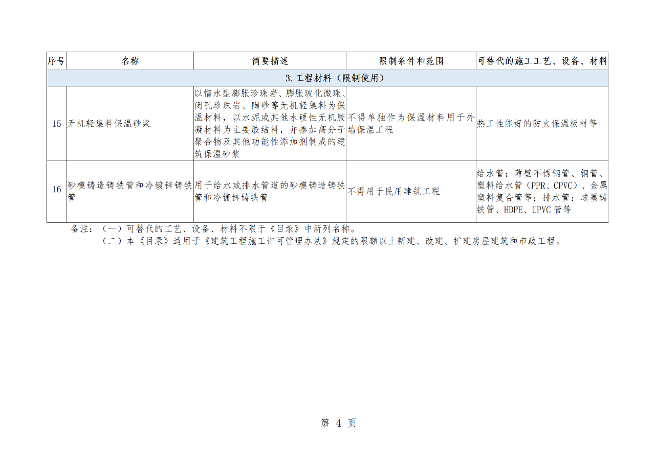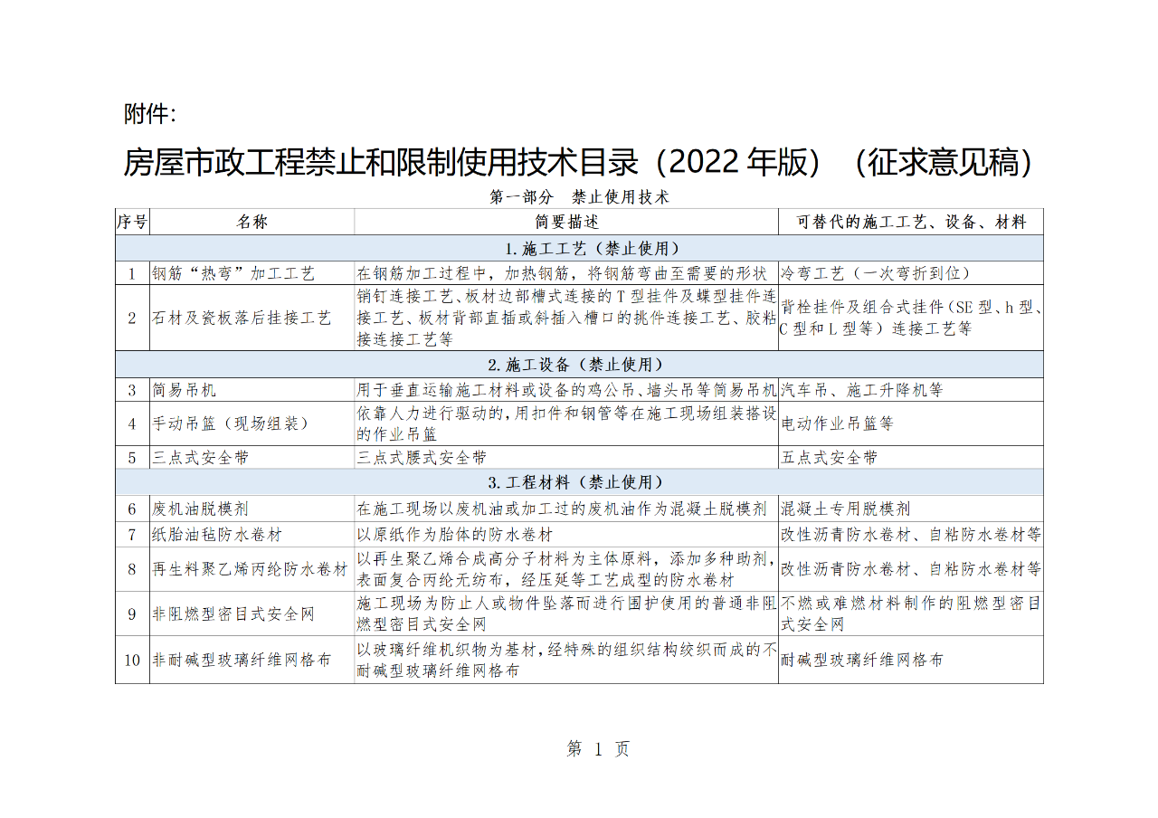 附件:房屋市政工程禁止和限制使用技術(shù)目錄(2022年版)(征求意見稿)