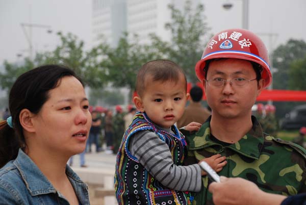 我公司繼528第一批15人和62第二批5人奔赴四川災(zāi)區(qū)之后,昨天,第三批援建四川災(zāi)區(qū)活動(dòng)板房突擊隊(duì)啟程赴川,這樣三批突擊隊(duì)員加上先前赴災(zāi)區(qū)的公司副總經(jīng)理劉艷軍和項(xiàng)目經(jīng)理原伏生,我公司赴災(zāi)區(qū)援建人數(shù)已達(dá)35人。
