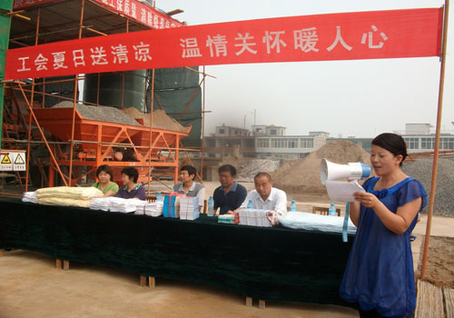 公司工會也為博書苑工地送來了特級綠豆和特級白糖,每年夏季在高溫季節(jié)工會組織慰問一線員工是公司一貫來的工作作風。工會和和工程管理部一道將深入公司其他施工現(xiàn)場,向冒高溫、戰(zhàn)酷暑的生產一線職工送上工會組織的關愛。